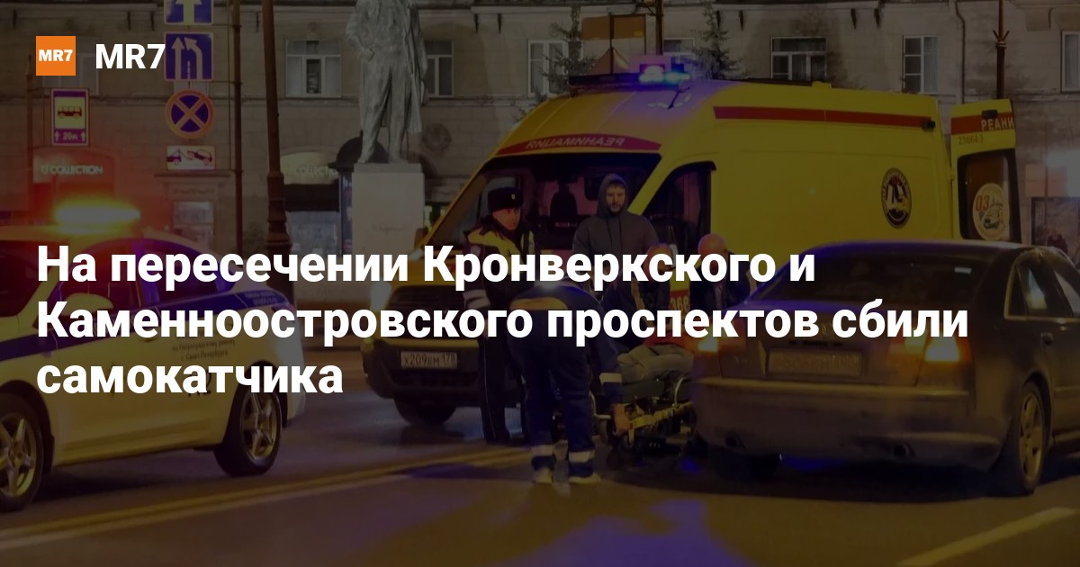 В Петроградском районе Петербурга сбили самокатчика. ДТП произошло на пересечении Кронверкского и Каменноостровского проспектов — недалеко от станции метро «Горьковская».