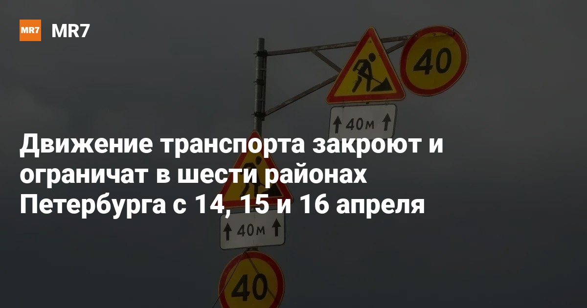 В Петербурге с 14, 15 и 16 апреля движение транспорта закроют и ограничат в шести районах, сообщает пресс-служба ГАТИ.