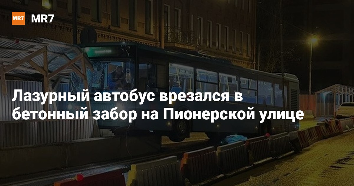 Автобус врезался в бетонный забор на Пионерской улице вечером 11 апреля, пишет 78.ru.