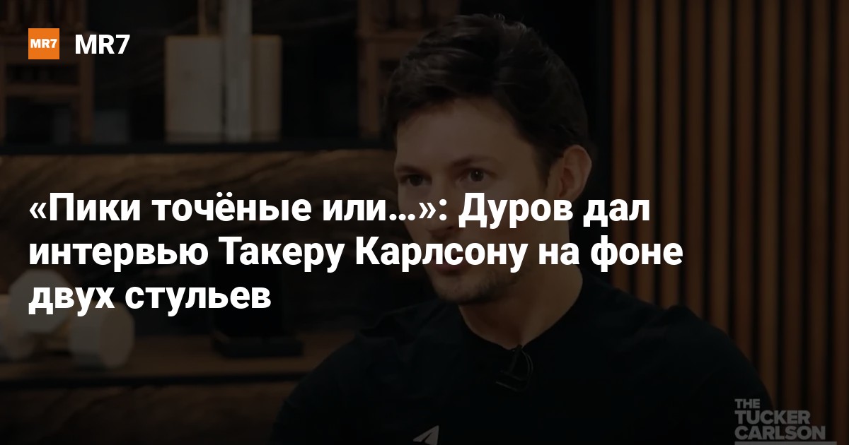 Интервью основателя мессенджера Telegram и экс-главы социальной сети «ВКонтакте» Павла Дурова американскому журналисту Такеру Карлсону было опубликовано в ночь на 17 апреля. Он рассказал о жизни, бизнесе и многом другом, но внимание зрителей привлёк фон, где было два стула — на одном пики точёные, а на другом… нетрудно догадаться, зная знаменитое выражение.