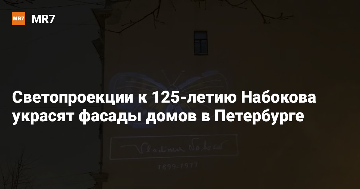125 лет назад 22 апреля родился писатель Владимир Набоков. По этому случаю фасады домов в Василеостровском и Петроградском районах Петербурга украсят световые проекции, рассказали в комитете по энергетике и инженерному обеспечению города.