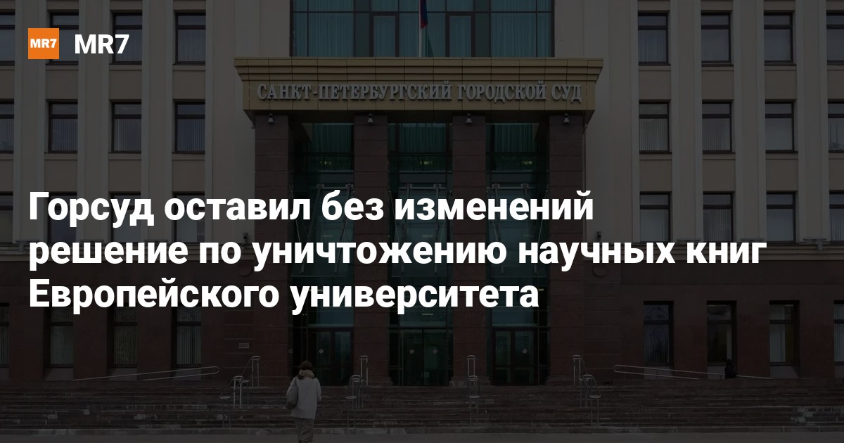 После этого ЕУСПб попытался оспорить решение в Горсуде. Представители учреждения указали, что надзорные органы должным образом не проводили анализа содержания изъятых работ. Суд не принял эти аргументы и счёл, что учебное заведение фактически принимало участие в деятельности этих организаций. Теперь изданиям грозит уничтожение.