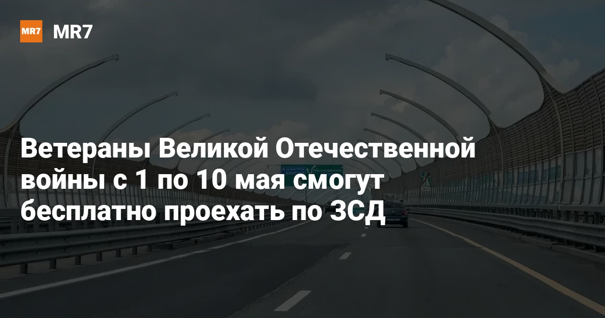 Для ветеранов Великой Отечественной войны, а также для сопровождающих их лиц Западный скоростной диаметр (ЗСД) станет бесплатным с 1 по 10 мая, сообщили в пресс-службе компании «Магистраль Северной столицы».