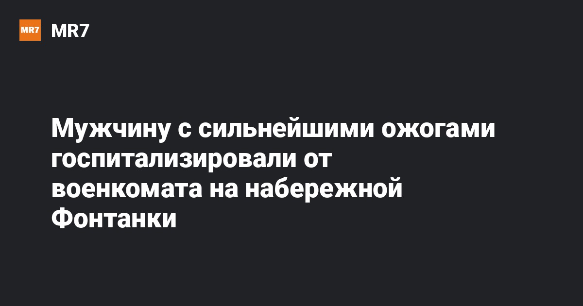 В Петербурге врачи борются за жизнь молодого мужчины, которого госпитализировали с военкомата Ленобласти на набережной реки Фонтанки, 90, с сильнейшими ожогами, пишет «Фонтанка».