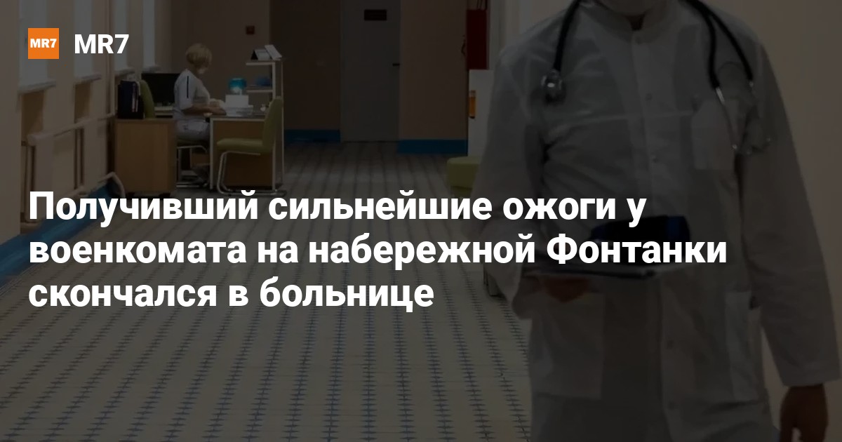 В Петербурге умер в больнице мужчина, получивший прошлой ночью 98% ожогов тела у военкомата Ленобласти на набережной реки Фонтанки, 90, сообщает 78.ru со ссылкой на источник в экстренных службах.