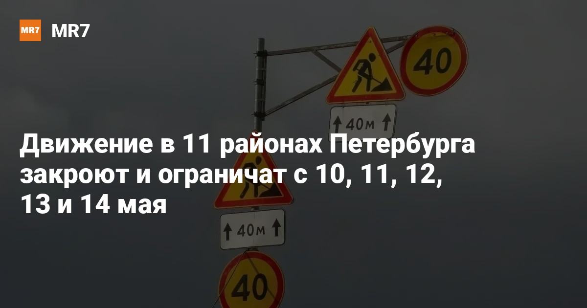 В Адмиралтейском, Василеостровском, Выборгском, Калининском, Кировском, Красногвардейском, Красносельском, Невском, Петродворцовом, Приморском и Фрунзенском районах Петербурга с 10, 11, 12, 13 и 14 мая вводятся новые ограничения движения транспорта, сообщили в пресс-службе ГАТИ.