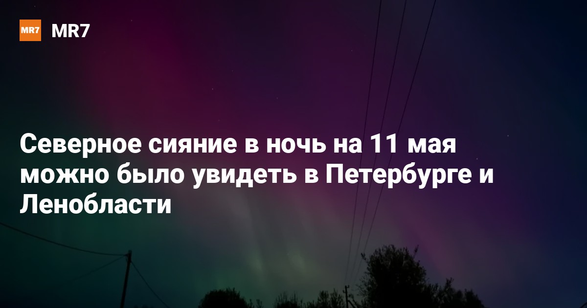 Поздним вечером в пятницу, 10 мая, и в ночь на 11 мая жители Петербурга и Ленинградской области могли увидеть в небе северное сияние. Фотографии появились в Telegram-канале «Астро Фото Болото».