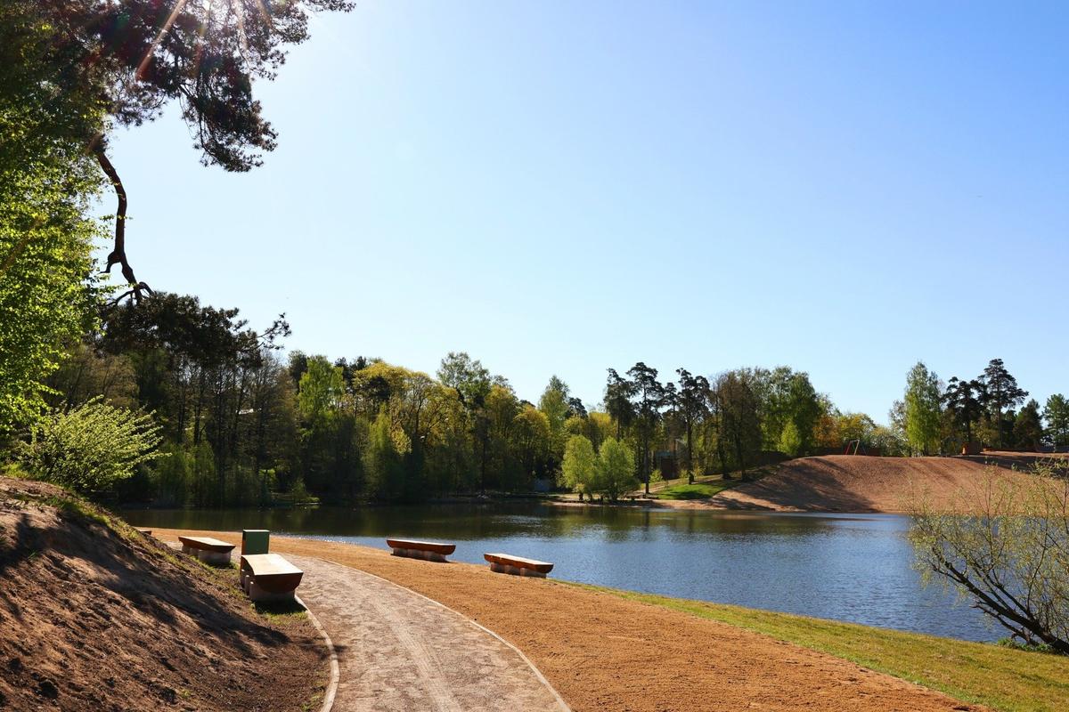 Территорию у Среднего и Нижнего озёр на первых этапах благоустроили в 2021 году. О завершении благоустройства окончательно заявили в октябре 2023-го. Сегодня у двух озёр есть места для занятий спортом и детских игр, установлено современное освещение.