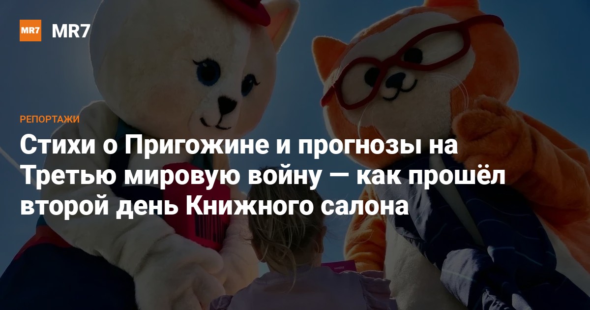 Закончили второй день воспоминаниями о ещё одной исторической личности — снова Евгении Пригожине, которому посвятили как минимум две секции за день. В рамках салона представили сборник z-поэзии «Воскресшие на Третьей мировой», свою стихотворную версию о том, что бывший глава ЧВК «Вагнер» на самом деле жив, прочитал петербургский поэт Игорь Никольский.