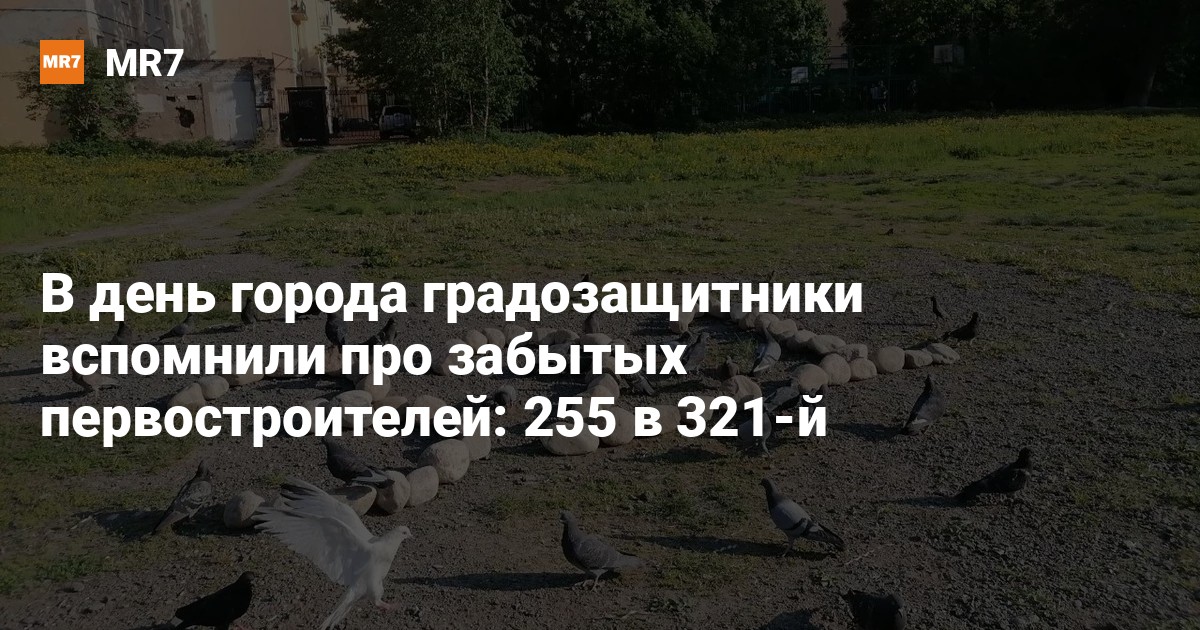 На пустыре на углу Сытнинской и Кронверкской улиц в день города прошла акция в память о первых строителях Петербурга, отдавших свои жизни ради воплощения задумок Петра I. Градозащитники общества «Старый Петербург» и местные активисты выложили из булыжников число: 321 — столько лет сегодня исполнилось городу, а затем превратили его в 255 — останки стольких людей были найдены на этом месте, в не отмеченном ни на одной карте захоронении начала XVIII века.