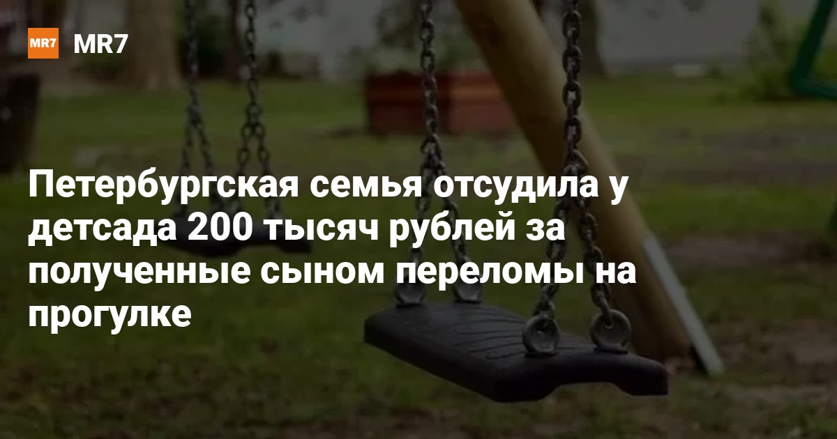 Московский районный суд Петербурга взыскал с государственного детского сада 200 тысяч рублей в пользу семьи, чей сын получил переломы во время конфликта с одногодкой во время прогулки.