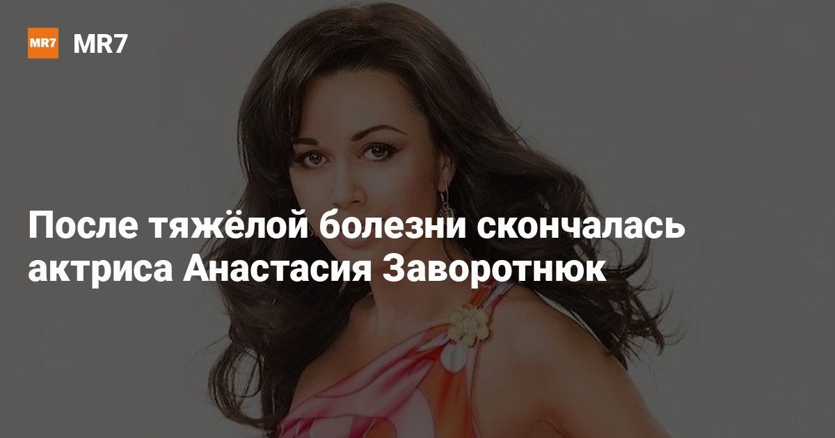 В возрасте 53 лет после тяжёлой болезни в ночь на четверг, 30 мая, скончалась актриса Анастасия Заворотнюк. Такая информация появилась в её группе в соцсети «ВКонтакте».