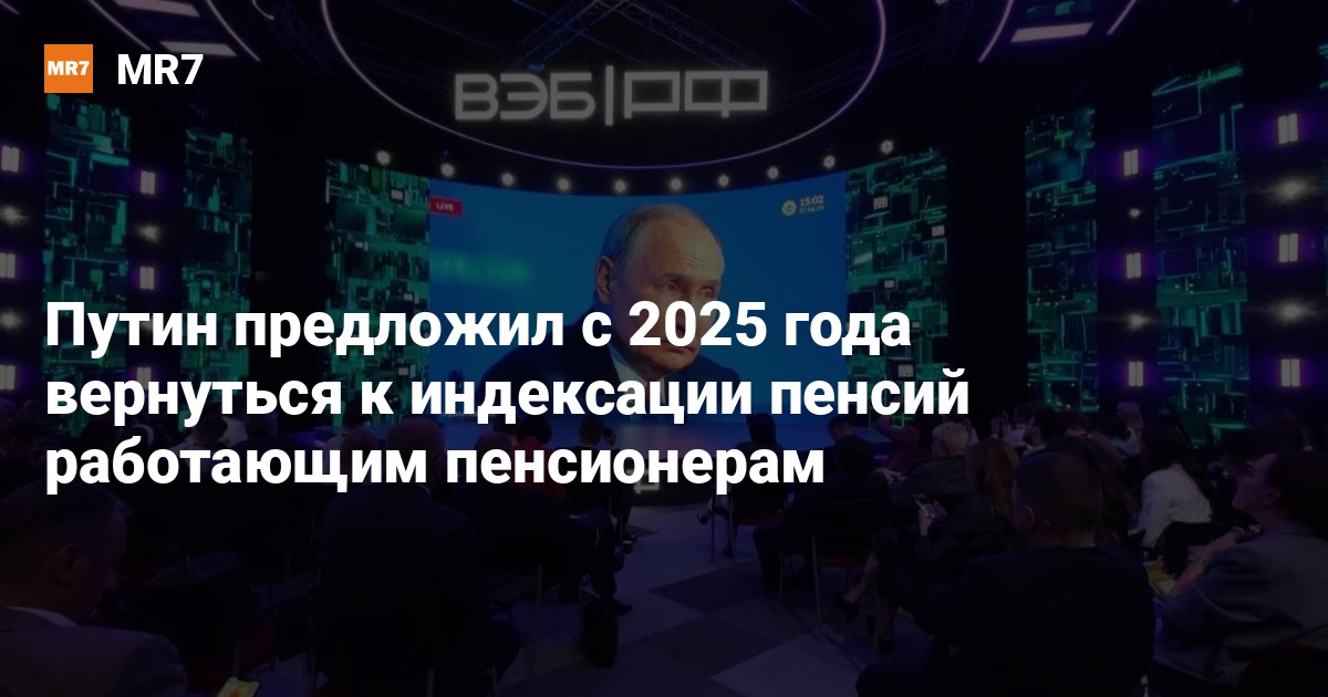 Президент России Владимир Путин на пленарном заседании ПМЭФ предложил с 2025 года возобновить индексацию пенсий работающим пенсионерам.