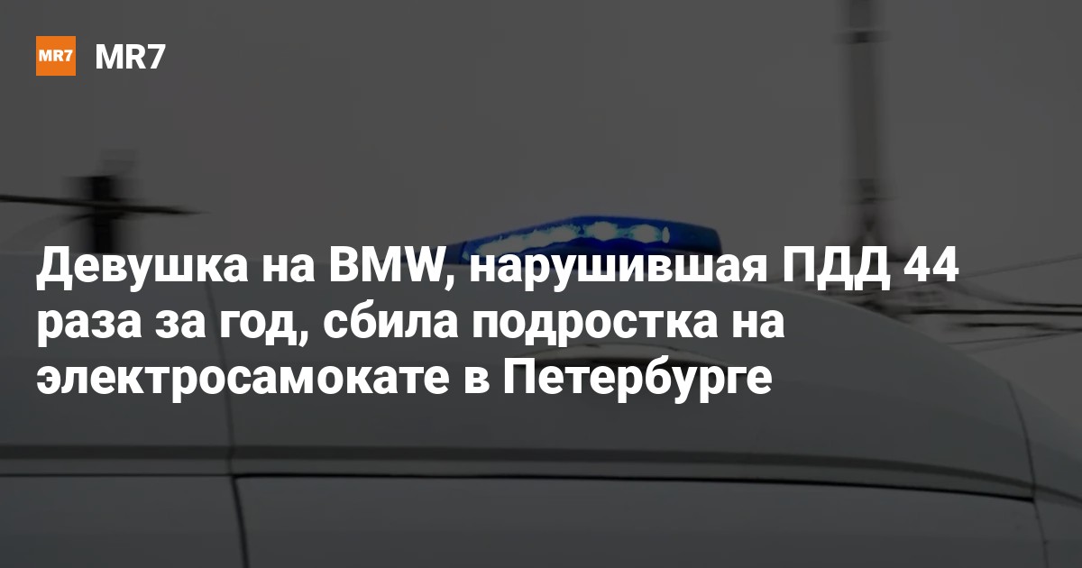 Известно, что авария произошла вечером 7 июня на Суздальском шоссе в Выборгском районе Петербурга. 28-летняя девушка ехала за рулём BMW 328 и в зоне нерегулируемого пешеходного перехода наехала на подростка. Пострадавшая переезжала дорогу на электросамокате.
