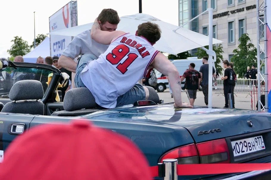 Самой шумной сегодня была «Газпром Арена» и, пожалуй, самой звёздной. Там была организована развлекательная площадка с тематическими зонами. Например, перед зрителями выступили артисты цирка, мужчины могли попробовать себя в силовых упражнениях, потягав штангу, а кто-то из посетителей даже устроил импровизированный «спарринг». И, конечно, было полно занятий для детей.