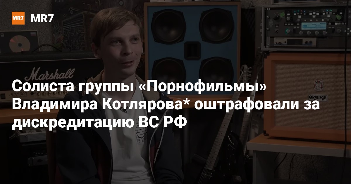Солиста группы «Порнофильмы» Владимира Котлярова* оштрафовали на 50 тысяч рублей за дискредитацию Вооруженных сил РФ, сообщили в пресс-службе столичных судов общей юрисдикции 13 июня.