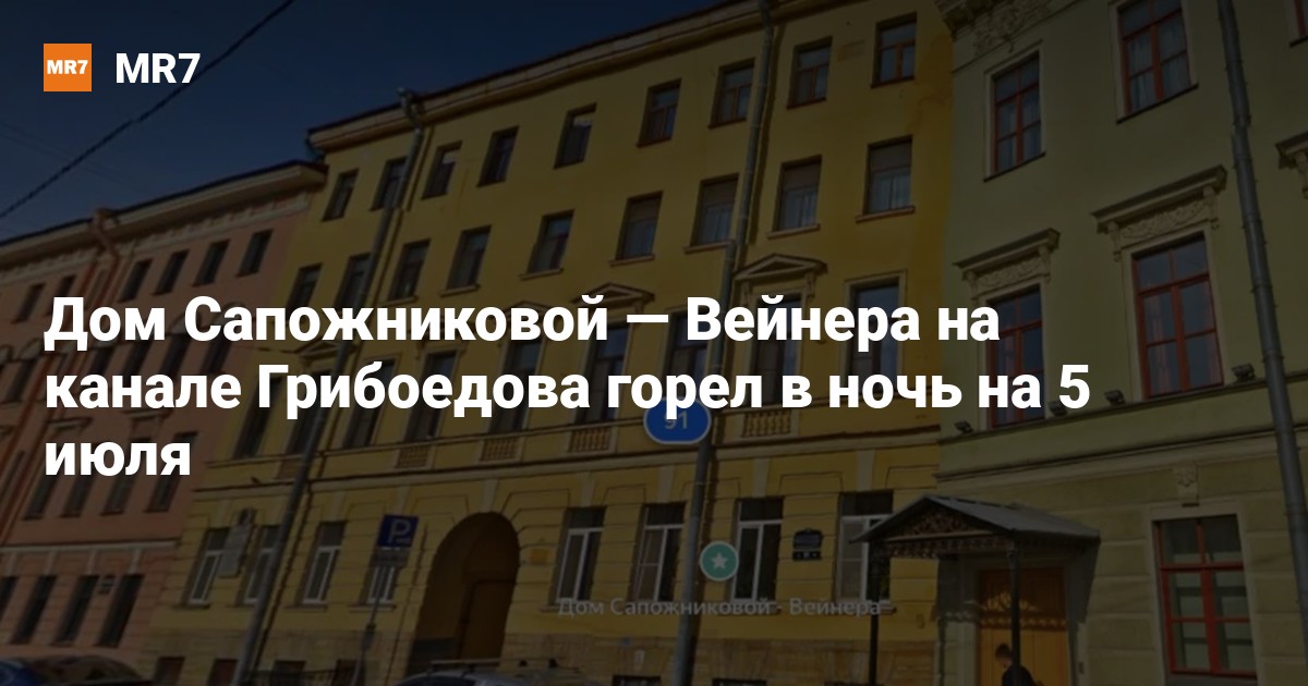 В ночь на 5 июля в Адмиралтейском районе Петербурга произошёл пожар, сообщили в пресс-службе ГУ МЧС России по городу. Там горел Дом Сапожниковой — Вейнера, который в 2001 году КГИОП добавил в список выявленных объектов, представляющих историческую, научную, художественную или иную культурную ценность.