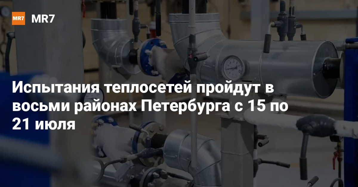 Теплоэнергетики проведут гидравлические испытания в восьми районах Петербурга и Всеволожском районе Ленобласти с 15 по 21 июля. Подробности рассказали в пресс-службе комитета по энергетике и инженерному обеспечению 15 июля.
