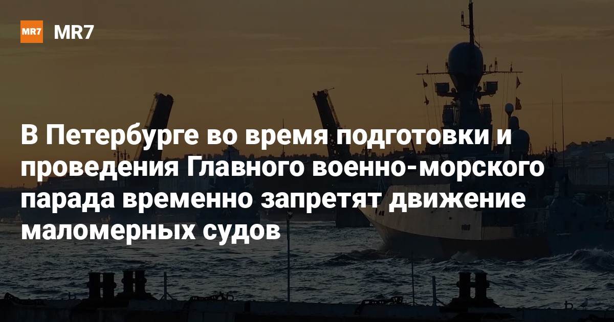 Оперативный штаб Петербурга принял решение о запрете движения маломерных судов на ряде водных артерий города в дни подготовки Главного парада ко Дню Военно-Морского Флота, а также в период его проведения — с 21 по 31 июля. Об этом сообщили в пресс-службе Смольного.