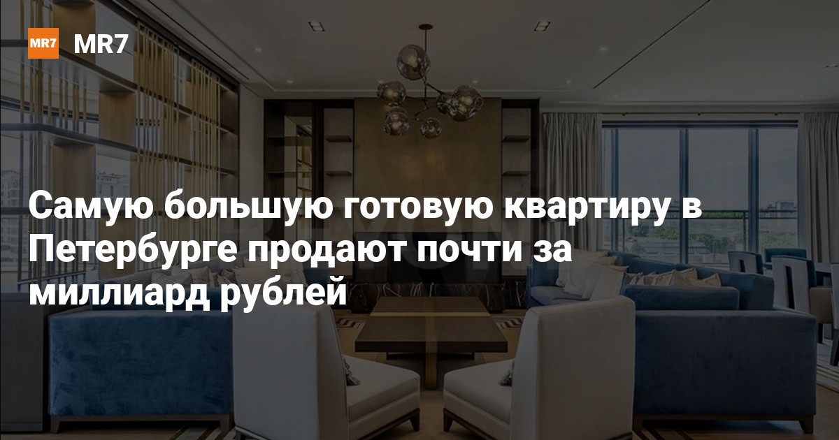 В Петербурге самой большой готовой квартирой стал пентхаус на Спортивной улице с семью комнатами общей площадью в 547,5 квадратных метров. Её продают за 900 миллионов рублей. Об этом сообщили аналитики сервиса «Авито Недвижимость».