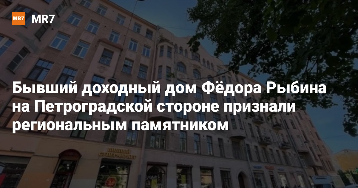 Бывший доходный дом купца Фёдора Рыбина на Пионерской улице, 35, признали объектом культурного наследия регионального значения. Об этом во вторник, 23 июля, сообщили в пресс-службе КГИОП.