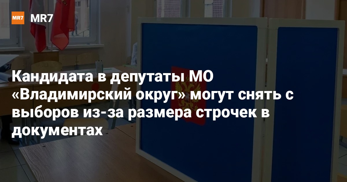 Кандидат на муниципальных выборах в МО «Владимирский округ» Андрей Бодров, который выдвигается от АНО «Центральный район за комфортную среду обитания», сообщил: его могут снять с выборов из-за величины строчек в подписных листах.