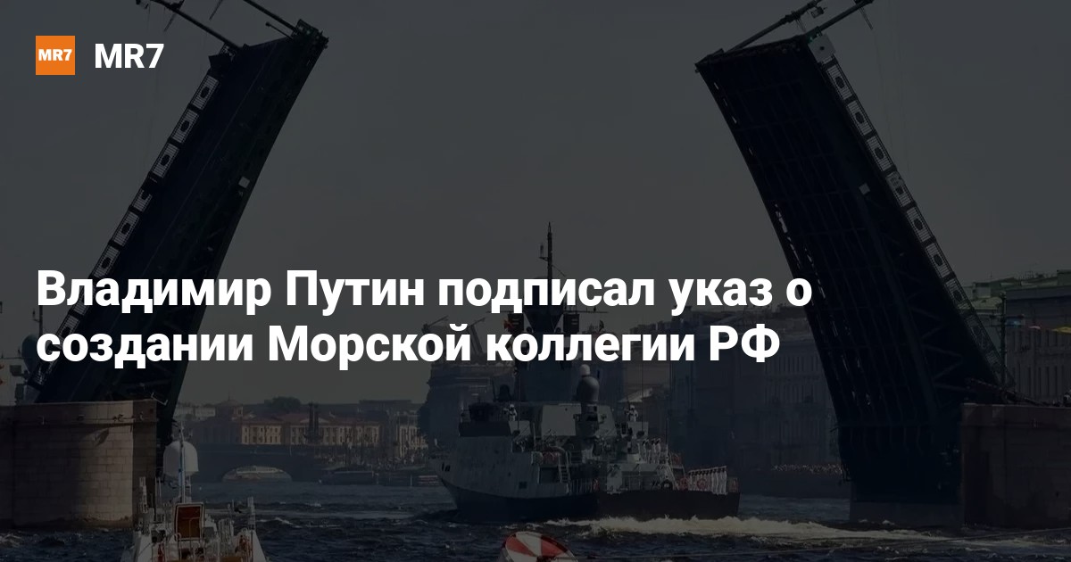 Президент России Владимир Путин подписал указ о создании Морской коллегии РФ. Соответствующий документ появился на официальном интернет-портале правовой информации во вторник, 13 августа.