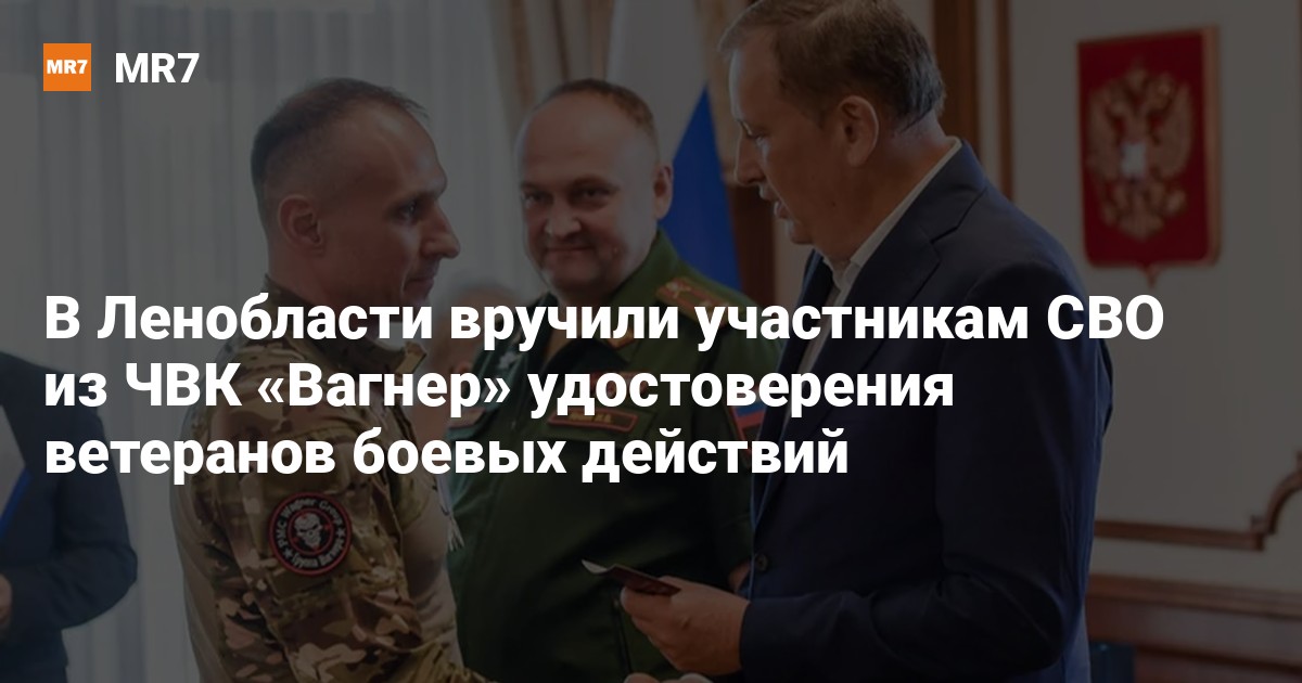 Губернатор Ленобласти Александр Дрозденко вручил сегодня 15 членам ЧВК «Вагнер» и добровольческого отряда «Барс» удостоверения ветеранов боевых действий, сообщили в администрации региона.