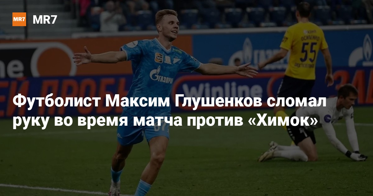 Полузащитник петербургского «Зенита» Максим Глушенков получил травму в первом тайме матча пятого тура чемпионата России против подмосковных «Химок». На замену вышел защитник Юрий Горшков. Позже Глушенков подтвердил журналистам, что сломал руку. Об этом 18 августа сообщает РИА Новости.