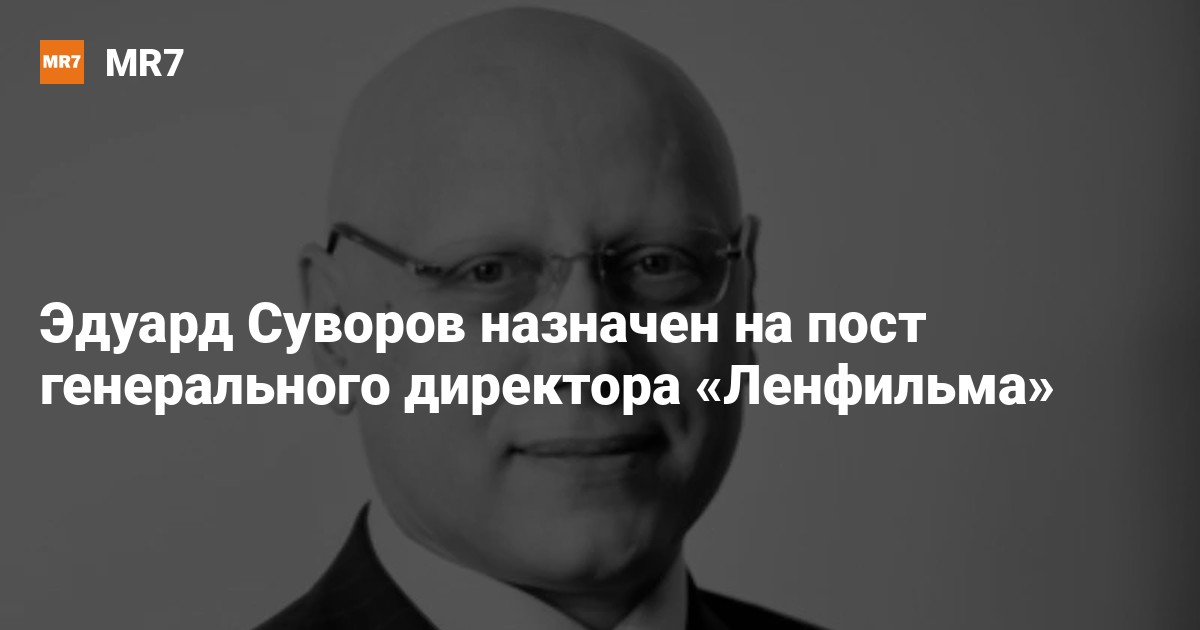 «Эдуард Николаевич Суворов назначен генеральным директоров киностудии «Ленфильм». Сегодня на почту киностудии пришло распоряжение Росимущества», — говорится в сообщении.
