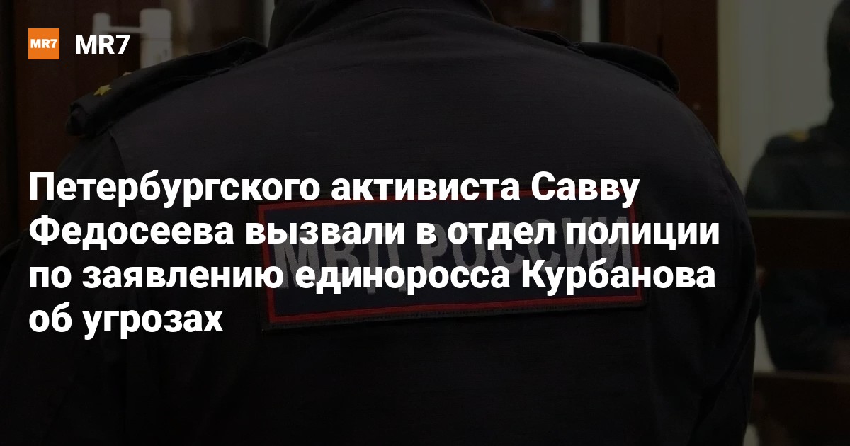 В Петербурге активиста, экс-кандидата в мундепы в МО «Литейный округ» Савву Федосеева вызвали в 78-й отдел полиции по заявлению об угрозах от кандидата в тот же муниципалитет, единоросса Равшанбека Курбанова. Об этом Федосеев сообщил в своих социальных сетях в воскресенье, 25 августа.