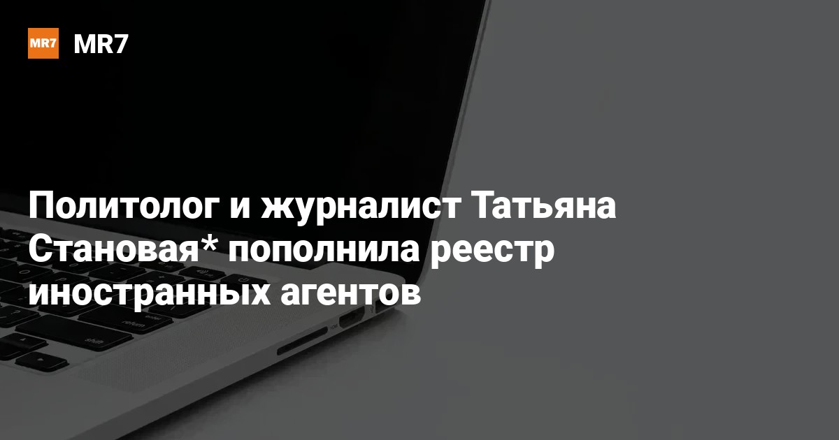 — политолог, журналист и публицист Татьяна Становая*. По версии министерства, она сама распространяла материалы иноагента, участвовала в деятельности нежелательной на территории РФ организации, и распространяла недостоверную информацию о решениях публичной власти РФ. Сейчас Становая* живёт за границей;