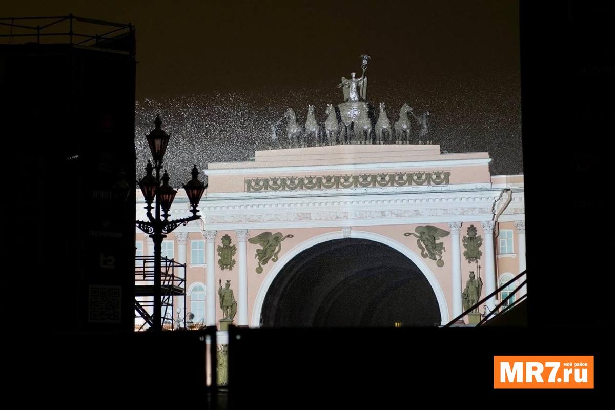 Репетиция мультимедийного шоу Эрмитажа прошла на Дворцовой площади накануне вечером. Фотокорреспонденту MR7 удалось запечатлеть подготовку к представлению, которое состоится 7 и 8 декабря.