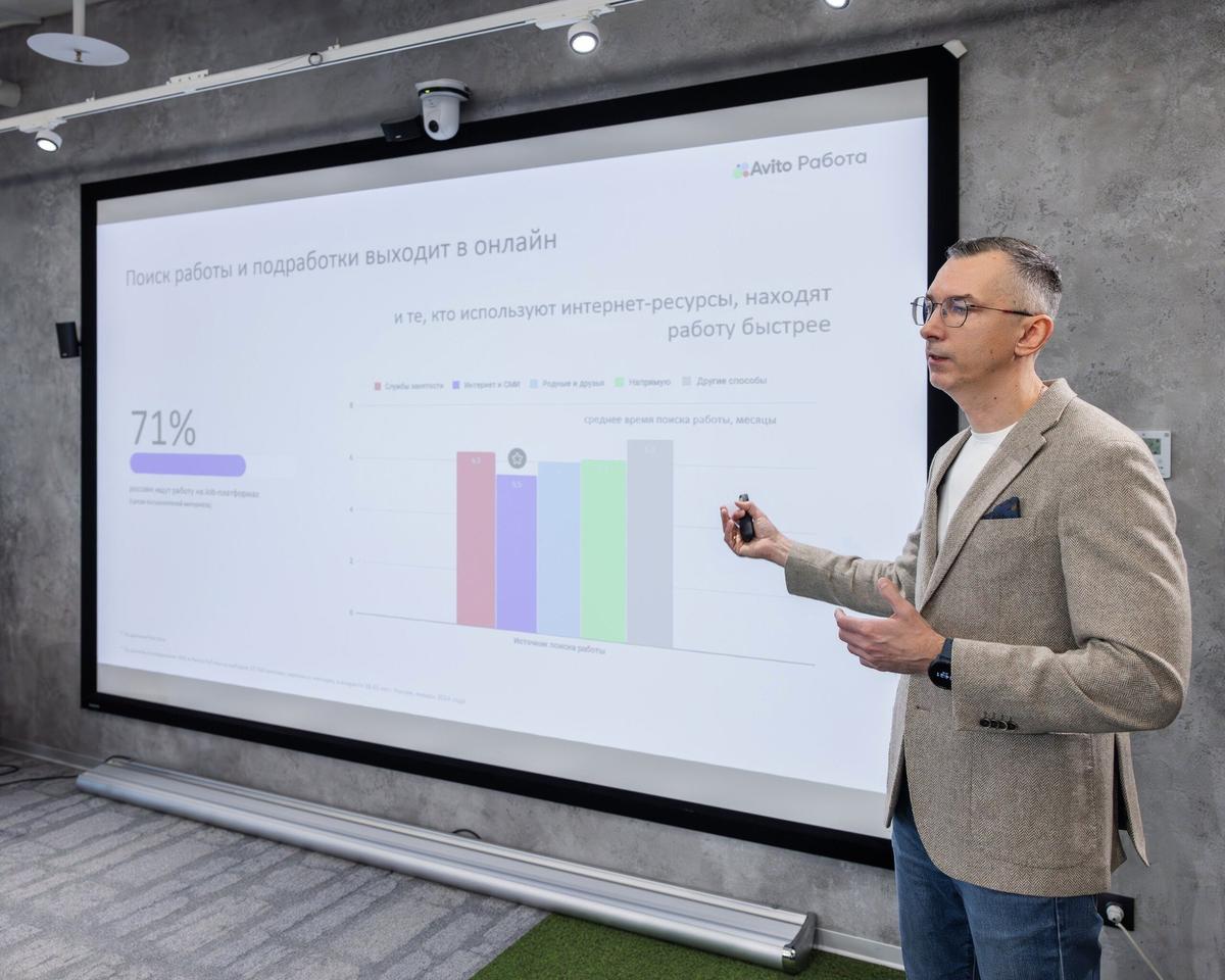 Дмитрий Пучков на презентации данных по рынку труда. Фото: предоставлено «Авито»