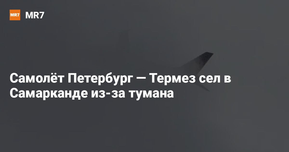Следовавший из Петербурга в Термез (Узбекистан) самолёт приземлился в международном аэропорту Самарканда из-за тумана, сообщили в telegram-канале Uzbekistan airports. Перед этим рейс задержали почти на десять часов.
