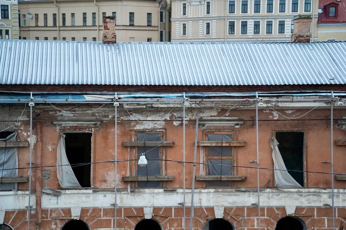 Впервые за десять лет петербуржцы смогли увидеть Конюшенное ведомство без «одежды» в виде гигантских и красочных баннеров.