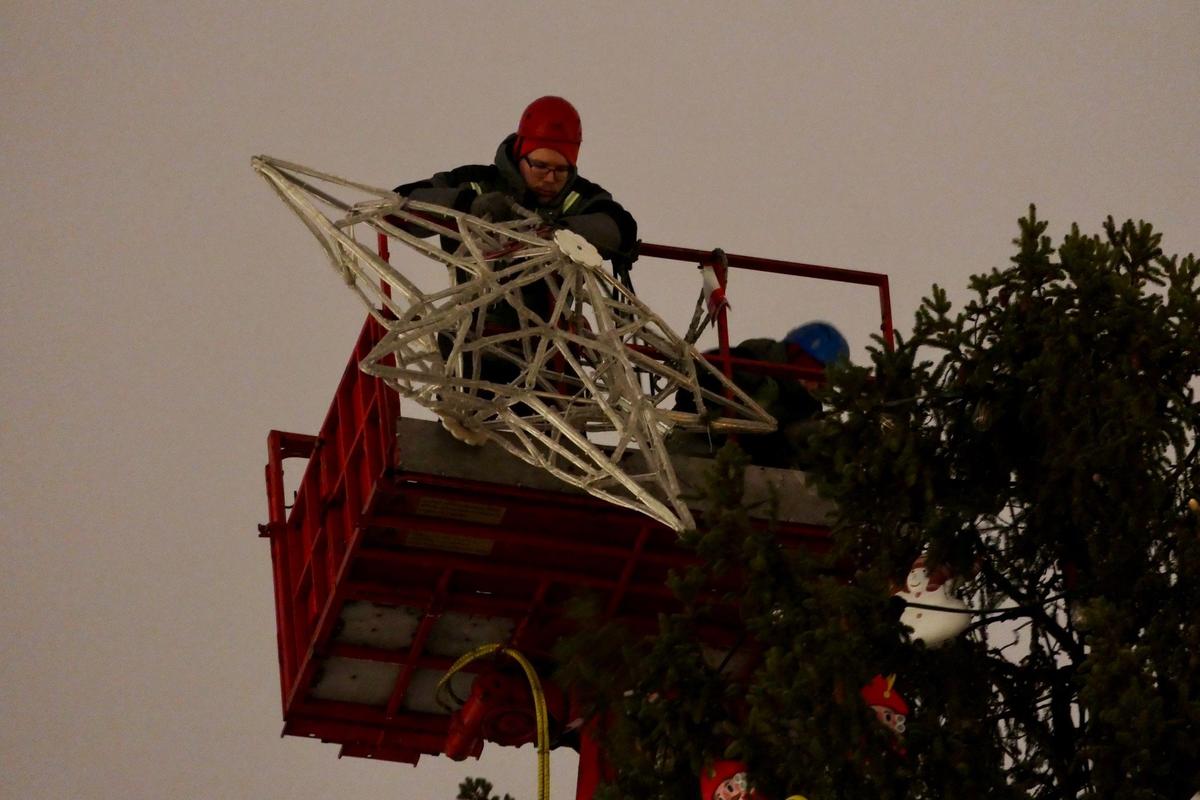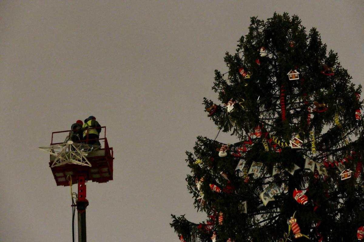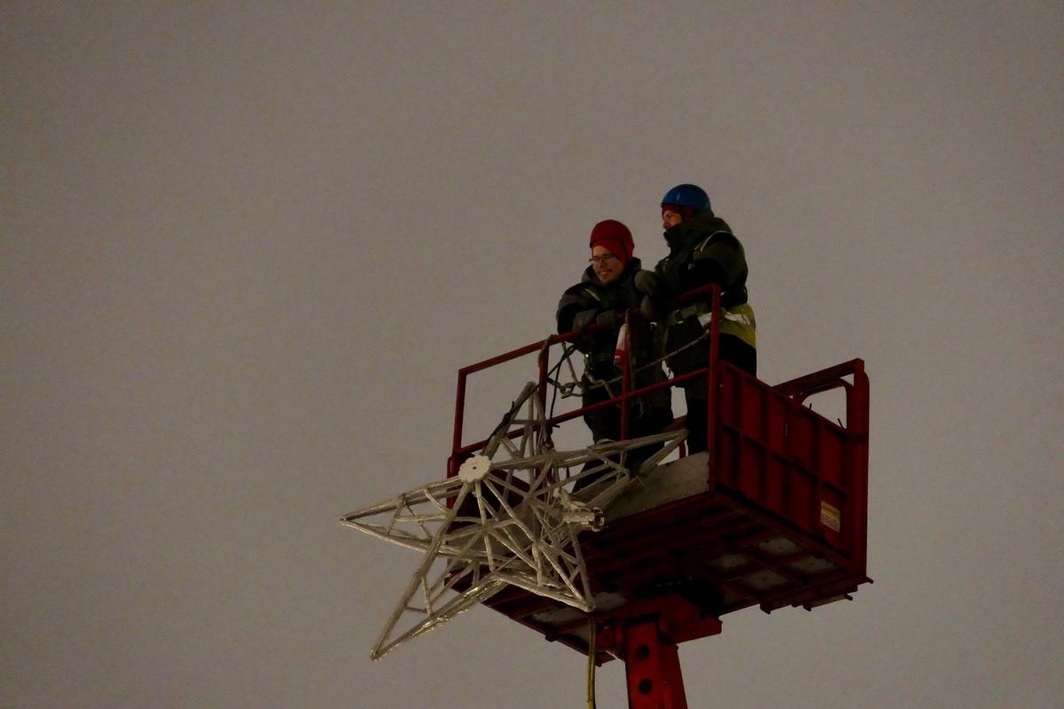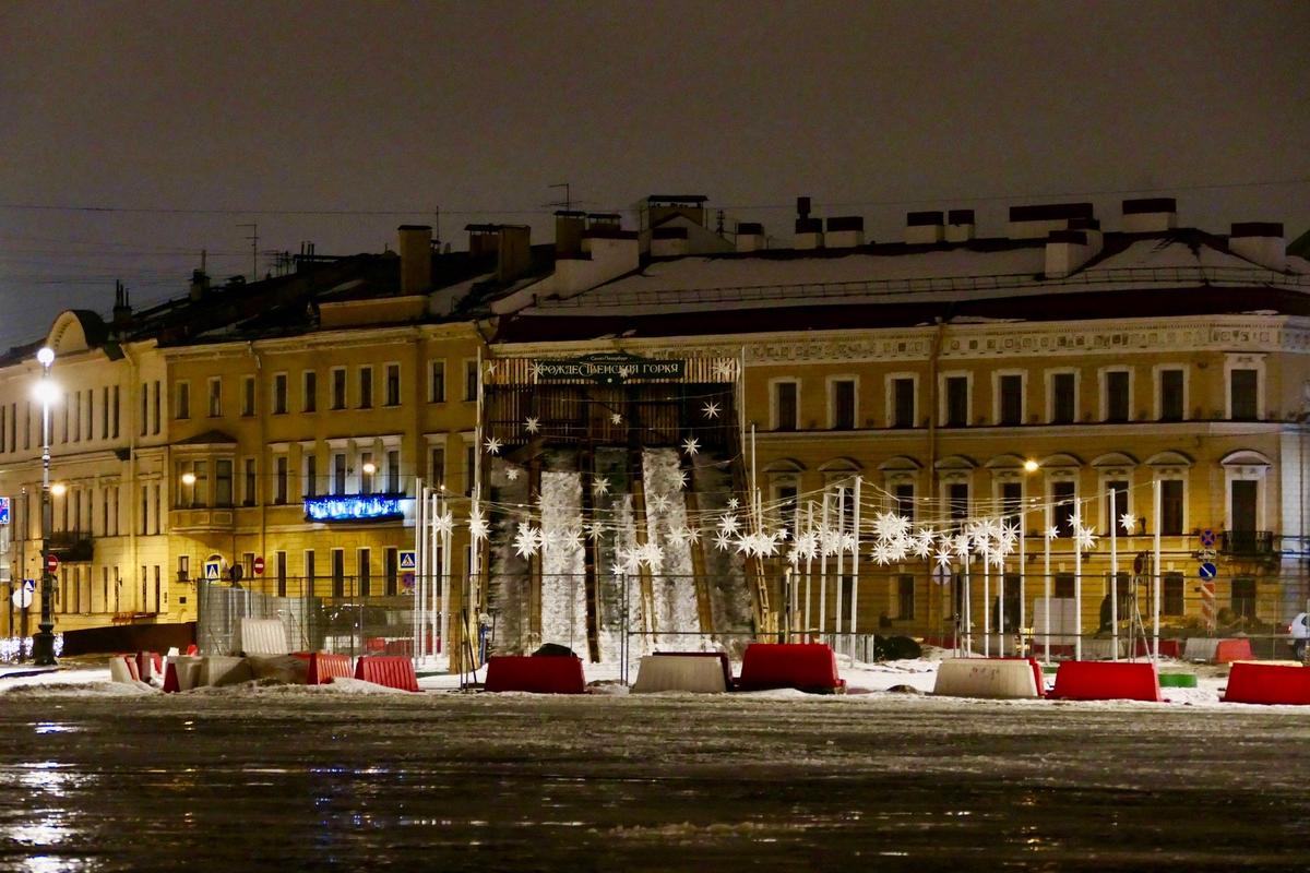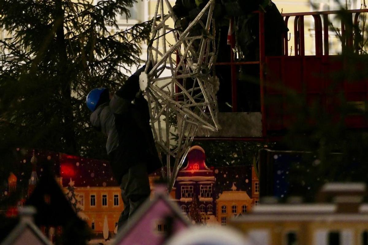 В ночь на 15 января на Дворцовой площади начали демонтировать праздничное дерево. Этот процесс займет примерно неделю. Пока же отключили новогоднюю иллюминацию и сняли с макушки ёлки звезду.