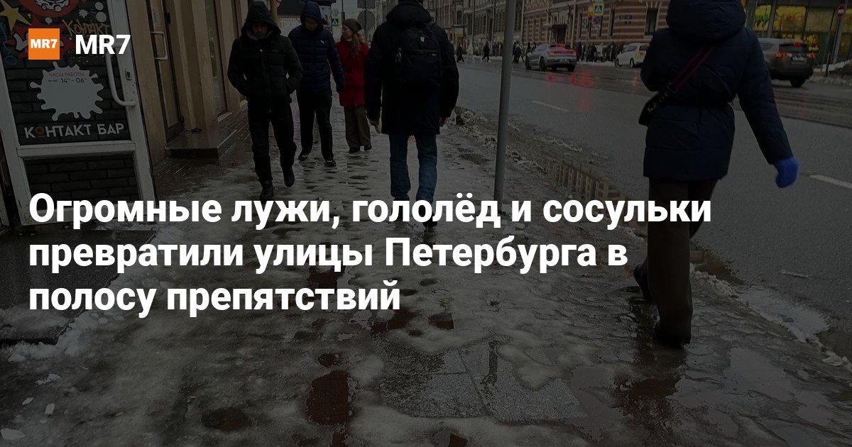 Вслед за сильным снегопадом в Петербург пришла оттепель, которая доставила массу проблем пешеходам. Огромные лужи и гололёд заставляют горожан ходить по проезжей части и оттаивающим газонам. И всё это с постоянным риском поскользнуться и упасть.