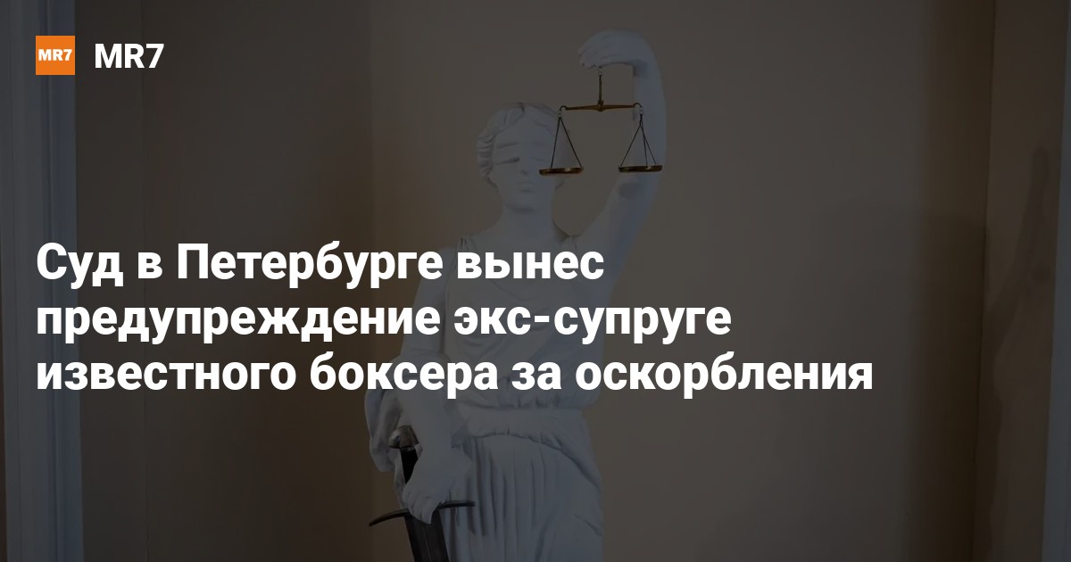 В Петербурге привлекли к административной ответственности местную жительницу за оскорбления известного боксера — они были женаты, сообщили в прокуратуре города.