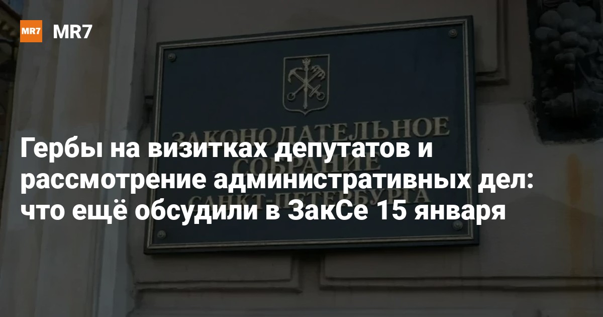 Использование герба на визитках депутатов и полномочия пересматривать дела по вопросам благоустройства и уборки территории для руководителей ГАТИ и ГЖИ обсудили петербургские депутаты на первом в 2025 году заседании Заксобрания 15 января. Рассказываем, какие ещё законопроекты были приняты сегодня.