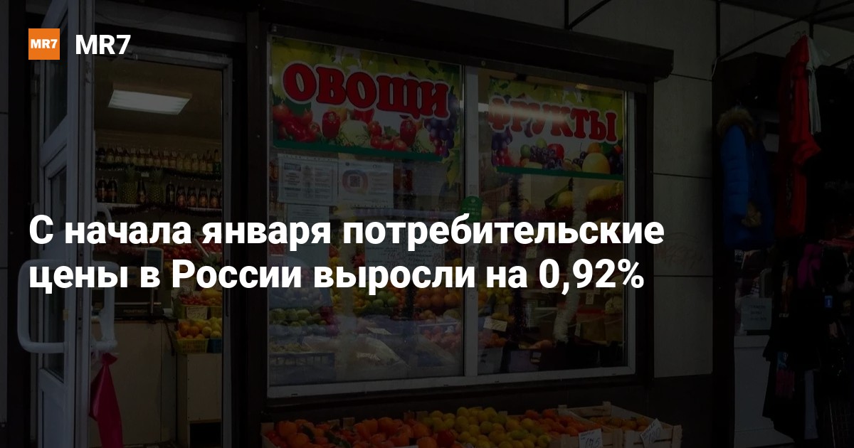 Инфляция в России с 14 по 20 января составила 0,25%, а с начала января цены выросли на 0,92%, сообщил Росстат. В годовом выражении показатель достиг 10,06%.