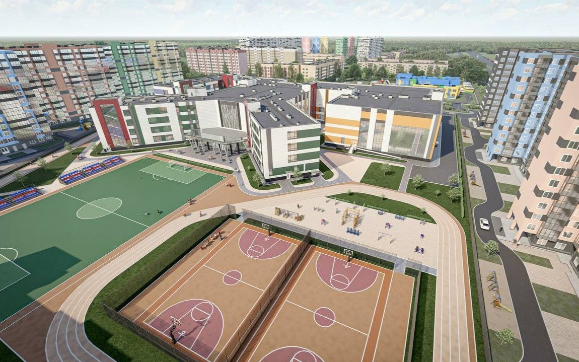 Кроме того, проект новой школы предусматривает обустройство двух бассейнов внутри здания и благоустройство территории образовательного учреждения — там появится футбольное поле и две баскетбольных площадки, а также зона с тренажерами.