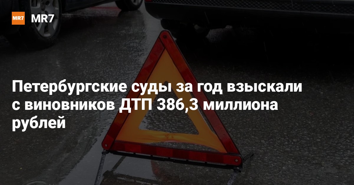 В 2024 году петербургские суды рассмотрели более семи тысяч гражданских дел по искам о возмещении ущерба от ДТП. С виновников аварий взыскали 386,3 миллиона рублей, сообщила руководитель объединённой пресс-службы судов города Дарья Лебедева.