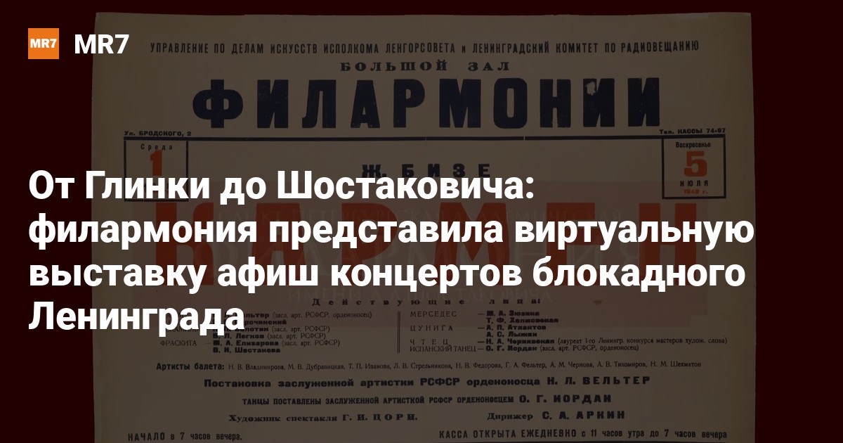 Петербургская филармония представила виртуальную выставку афиш, приуроченную к 81-й годовщине полного снятия блокады Ленинграда. Теперь на сайте филармонии экспонируются программы как блокадных концертов, так и концертов, которые музыканты Ленинграда проводили в период эвакуации в Новосибирске.
