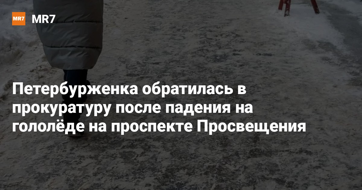 Инцидент произошёл 25 ноября прошлого года во дворе дома № 24, корпус 2, по проспекту Просвещения. Пенсионерка поскользнулась на гололёде и получила перелом левой руки.