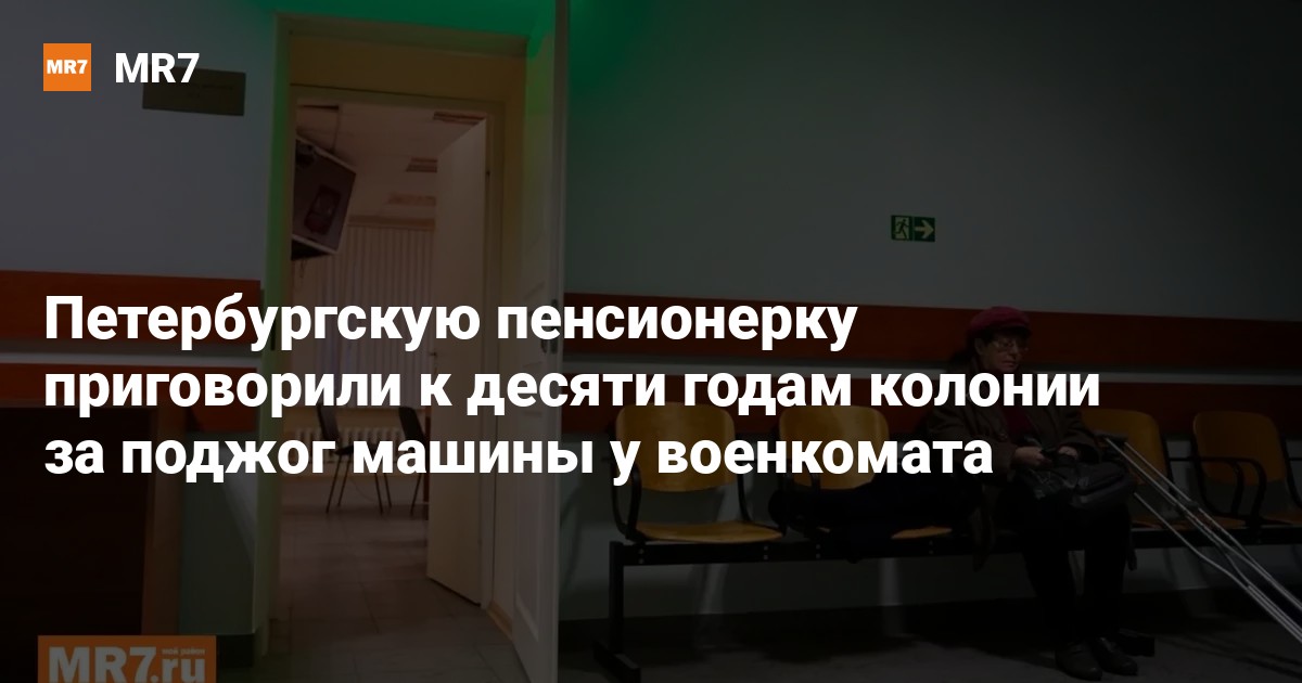 В Первом Западном окружном военном суде вынесли приговор 76-летней Галине Ивановой*. Её признали виновной по статье 205 УК РФ (теракт) за поджог машины у военкомата и приговорили к десяти годам лишения свободы, сообщили MR7 в объединённой пресс-службе судов Петербурга.