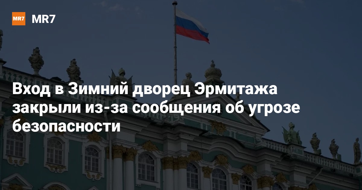 UPD (13:42) Вход в главный музейный комплекс Эрмитажа возобновлён. Музей работает в штатном режиме, сообщили в его пресс-службе. Сотрудники службы безопасности Эрмитажа и росгвардейцы проверили залы, но не нашли подозрительных предметов.