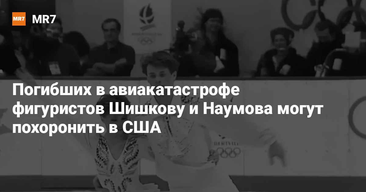 Чемпионы мира по фигурному катанию в парах в составе сборной России (1994) Евгения Шишкова и Вадим Наумов, погибшие в авиакатастрофе в Вашингтоне, могут быть похоронены в США. Об этом пишет РИА «Новости» со ссылкой на «несколько независимых друг от друга источников».