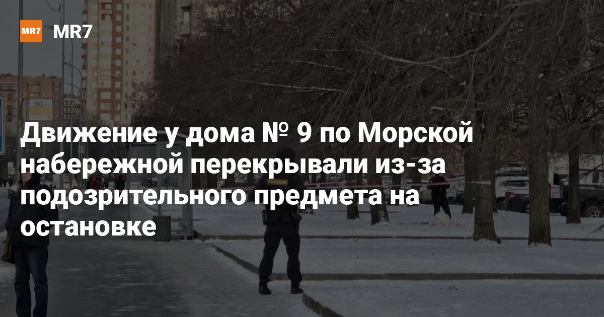 UPD (18:43): Найденный на остановке у дома № 9 по Морской набережной предмет оказался бесхозной коробкой. Опасности она не представляет, уточнили MR7 в пресс-службе ГУ МВД РФ по Петербургу и Ленобласти.