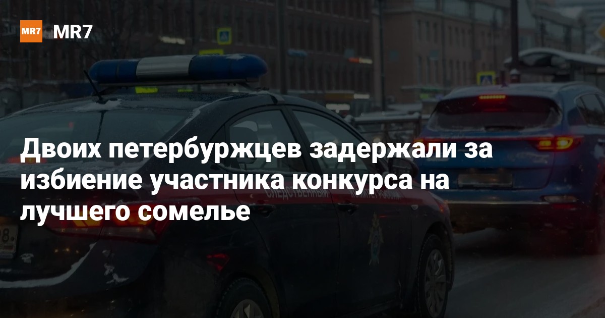 В Петербурге задержаны двое местных жителей, которые напали на участника кубка на лучшего сомелье. Им предъявлены обвинения по части 2 статьи 213 УК РФ (хулиганство, совершённое группой лиц) с максимальным наказанием до семи лет лишения свободы, сообщили в ГСУ СК России по Петербургу.